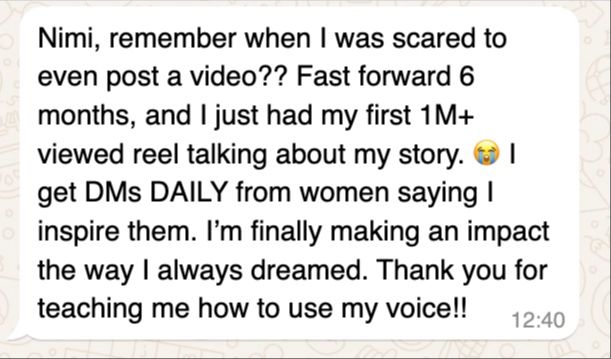 I went on to grow my followers by 635% (16k to 118k in months), host sold-out live workshops, mentor CEOs and founders, get invited to speak at multiple high profile events, and build a thriving public speaking brandâall by mastering the power of communication.