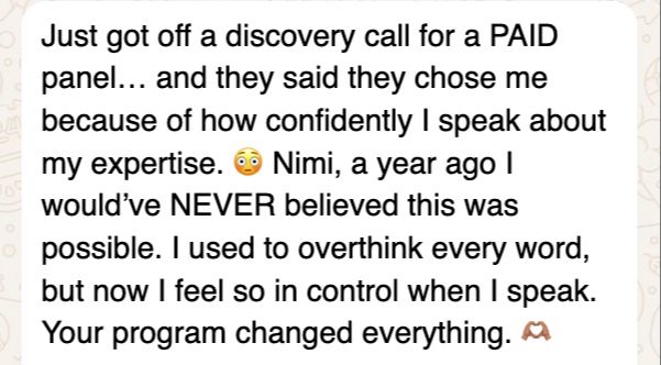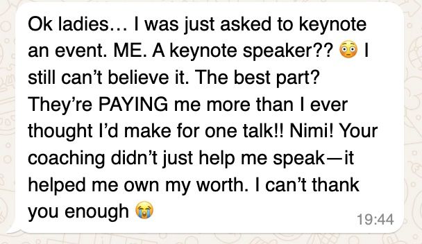 Just last night, while unwinding at home, I received multiple inquiries from women ready to elevate their presence and grow their public speaking brandâbecause when your message is clear and your voice is powerful, opportunities come to you.